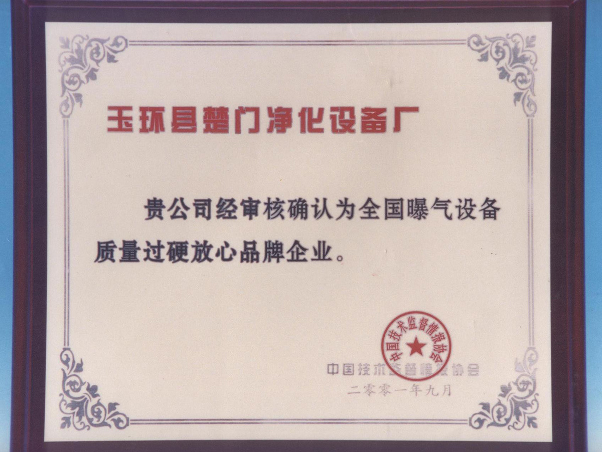 公司主導產(chǎn)品“海通”牌KBB型可變微孔曝氣器系列,是一種高效節(jié)能、無需維修的充氧曝氣裝置;在鼓風曝氣系統(tǒng)膜片式微孔曝氣器的開發(fā)、研究、制造方面取得了一系列豐碩的成果。曾多次榮獲國家、省、市級各項獎勵與殊榮,是國家環(huán)境保護總局《中、微孔曝氣器產(chǎn)品標準》參編單位HJ/T252-2006。中國環(huán)保產(chǎn)業(yè)協(xié)會水污染治理委員會推薦產(chǎn)品;2002年建設部科技推廣項目,全國曝氣設備質(zhì)量過硬放心品牌企業(yè)和中國環(huán)保產(chǎn)品質(zhì)量信得過重點品牌;已在日處理水量16×104t/d的石家莊橋西污水處理廠一期和二期改造工程,兩次使用均在五年以上及幾千家單位1~10多年的生產(chǎn)性運行,性能穩(wěn)定,布氣均勻,未出現(xiàn)膜片滑出和破損現(xiàn)象,是新一代免維修產(chǎn)品。